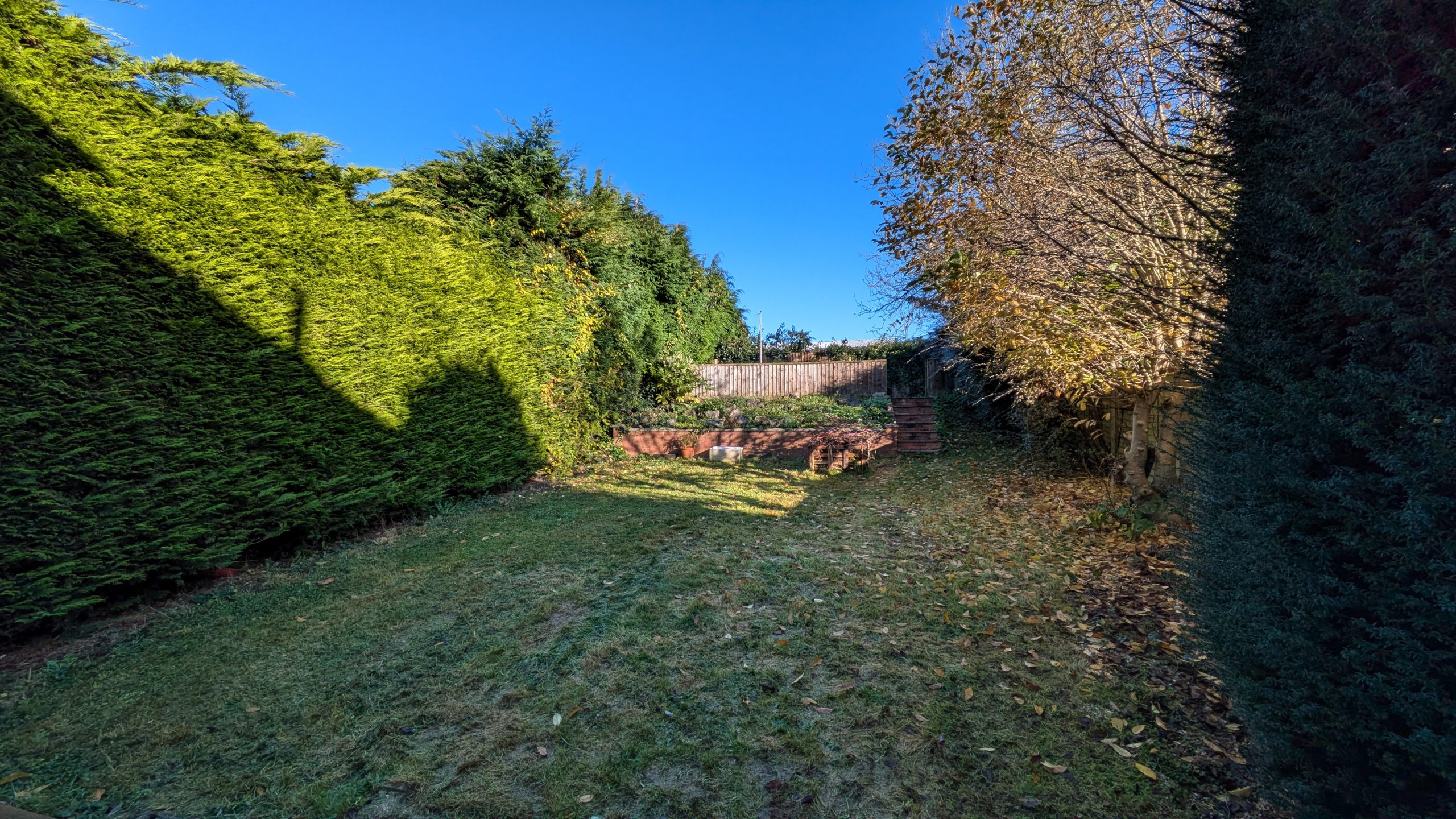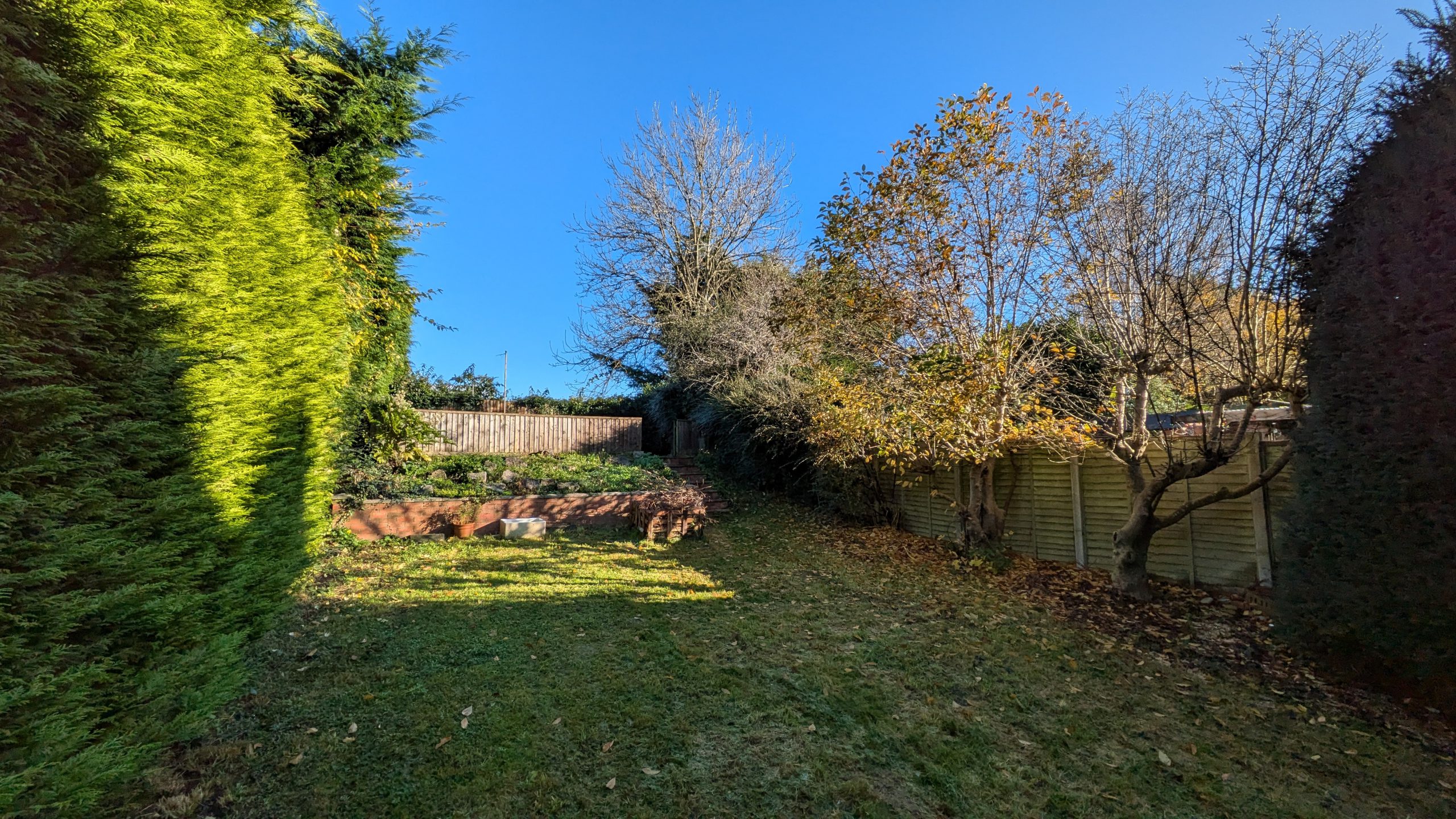The front garden is laid to lawn. Gated side access to the rear garden being laid to lawn with decked patio, paved terrace at the rear, mature hedging and trees, outside tap.
