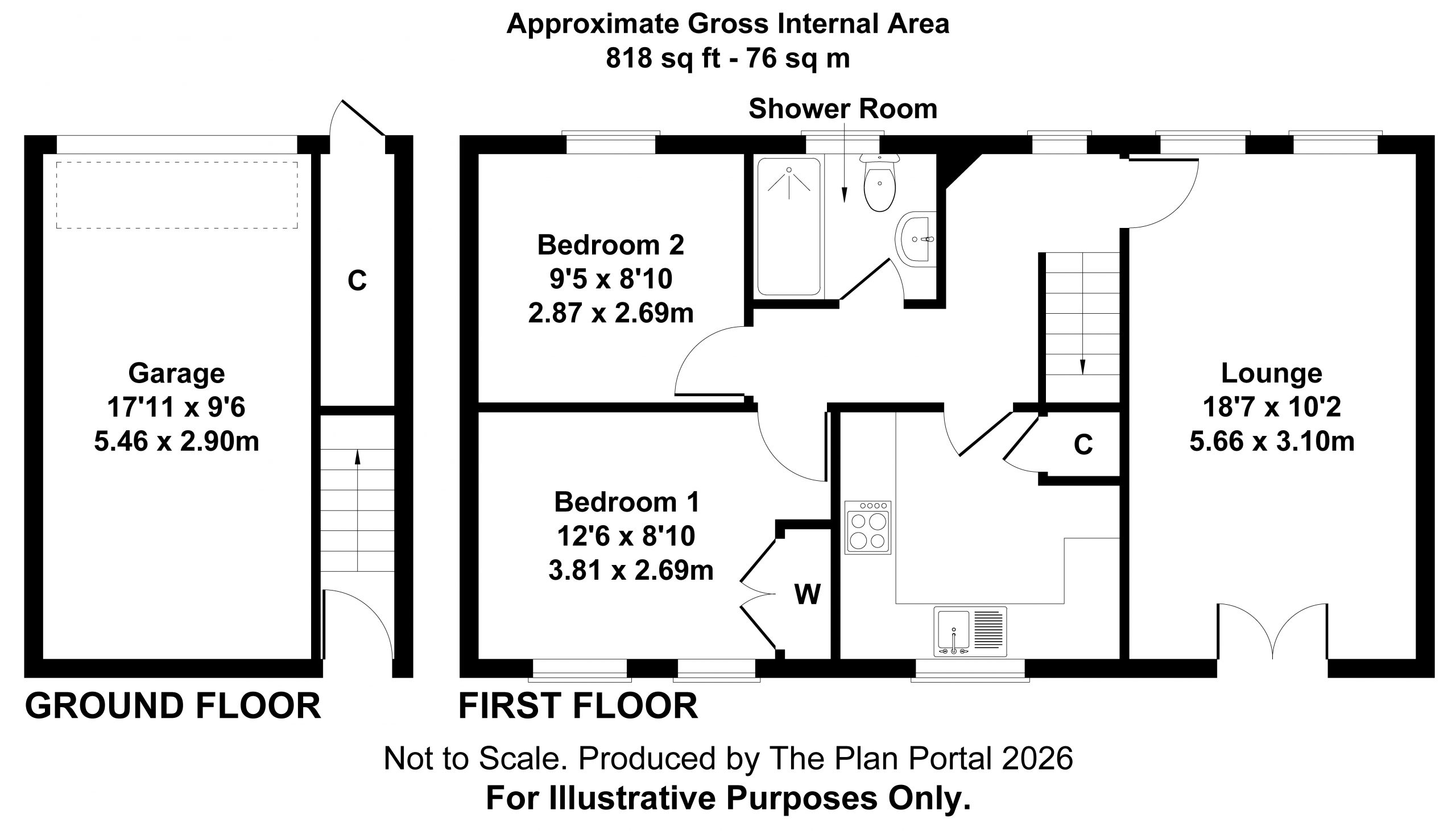 Fitted with a good range of wall and floor units, worktops with tiled splashbacks, 1.5 inset sink with mixer tap, built-in oven, 4 ring gas hob and extractor hood, space for washing machine and fridge/freezer, large storage cupboard, wall mounted Ideal gas boiler for hot water and central heating (not tested).